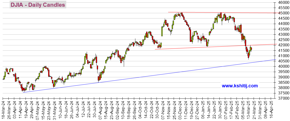 道琼斯指数再次下跌★★■★。这令我们对该指数跌至40000-39000点的看空观点不变◆■★◆◆。任何反弹走势都将限制在42000-42100点之间。